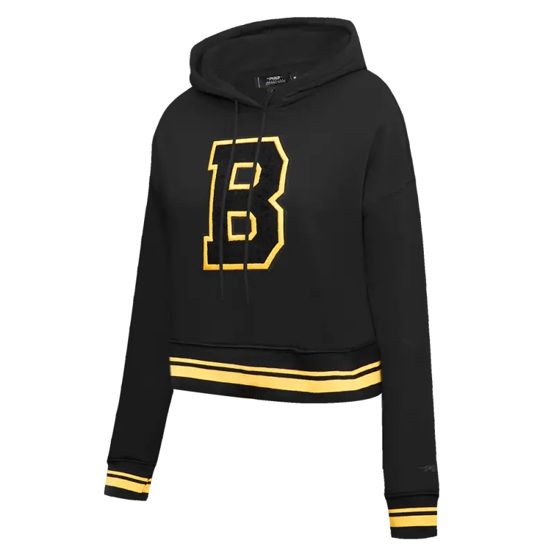 NHL BOSTON BRUINS RETRO CLASSIC WOMEN’S RIB CROPPED PULLOVER HOODIE (BLACK\/YELLOW)