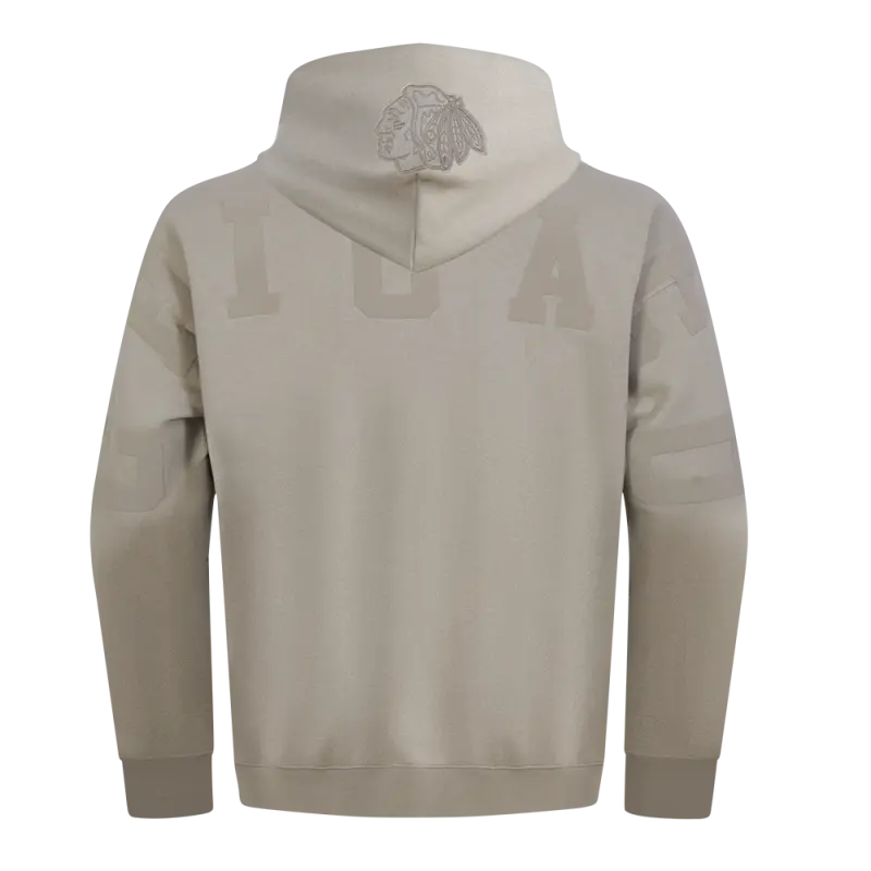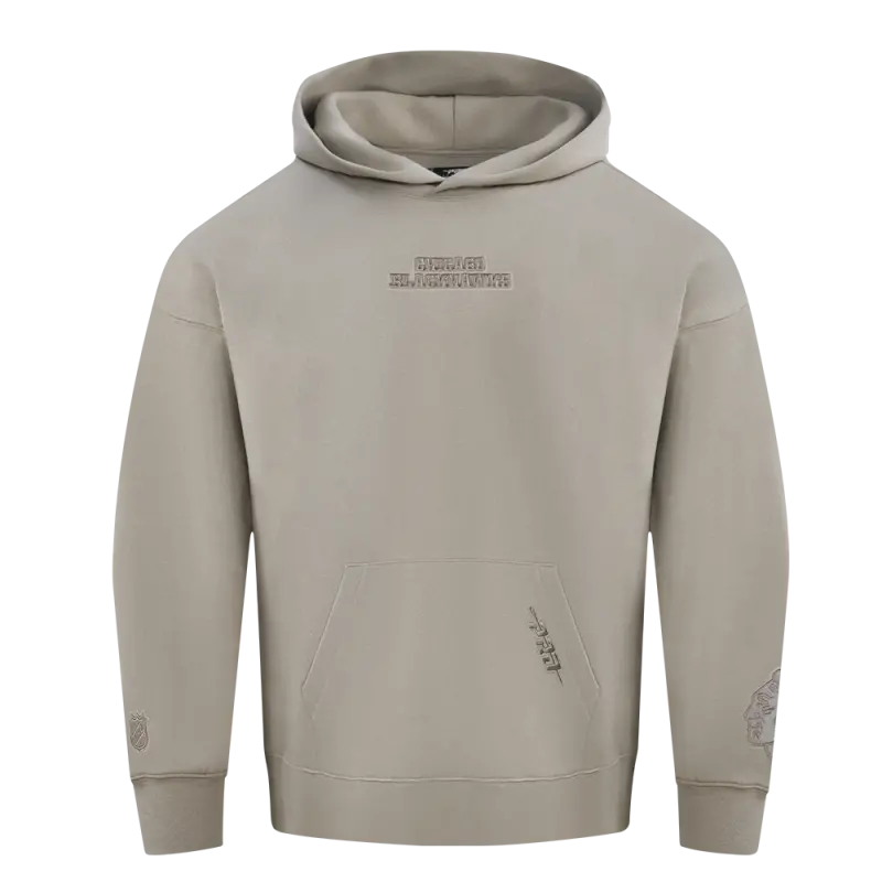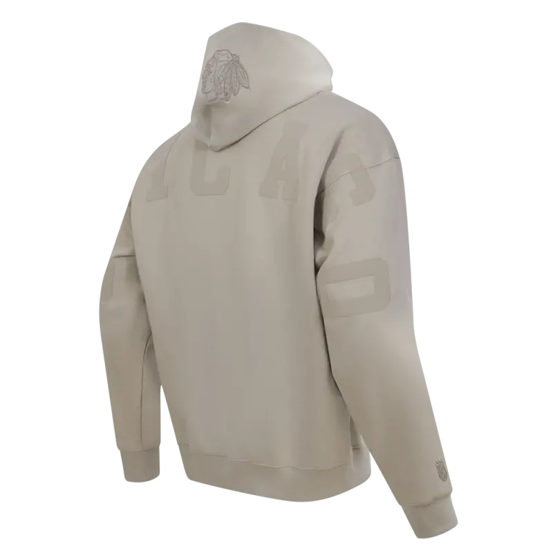 NHL CHICAGO BLACKHAWKS WINGSPAN MEN’S DROP SHOULDER FLEECE PULLOVER HOODIE (TAUPE)