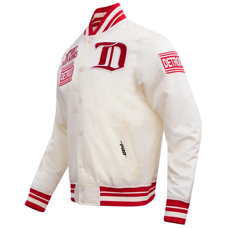 NHL DETROIT RED WINGS RETRO CLASSIC MEN’S RIB SATIN JACKET (EGGSHELL\/ RED)