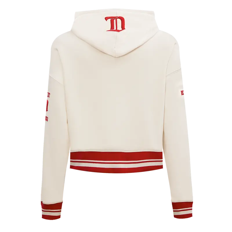 NHL DETROIT RED WINGS RETRO CLASSIC WOMEN’S RIB CROPPED PULLOVER HOODIE (EGGSHELL\/ RED)