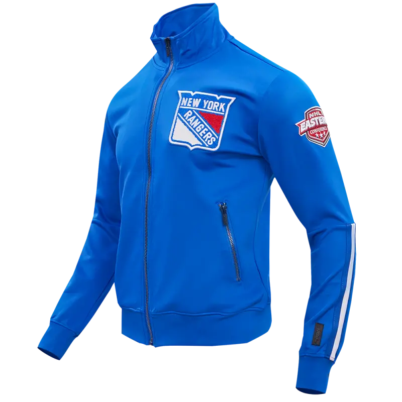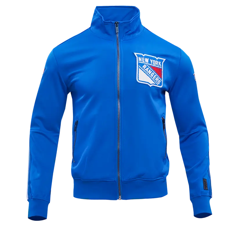 NHL NEW YORK RANGERS CLASSIC MEN’S CHENILLE DOUBLE KNIT TRACK JACKET (ROYAL BLUE)