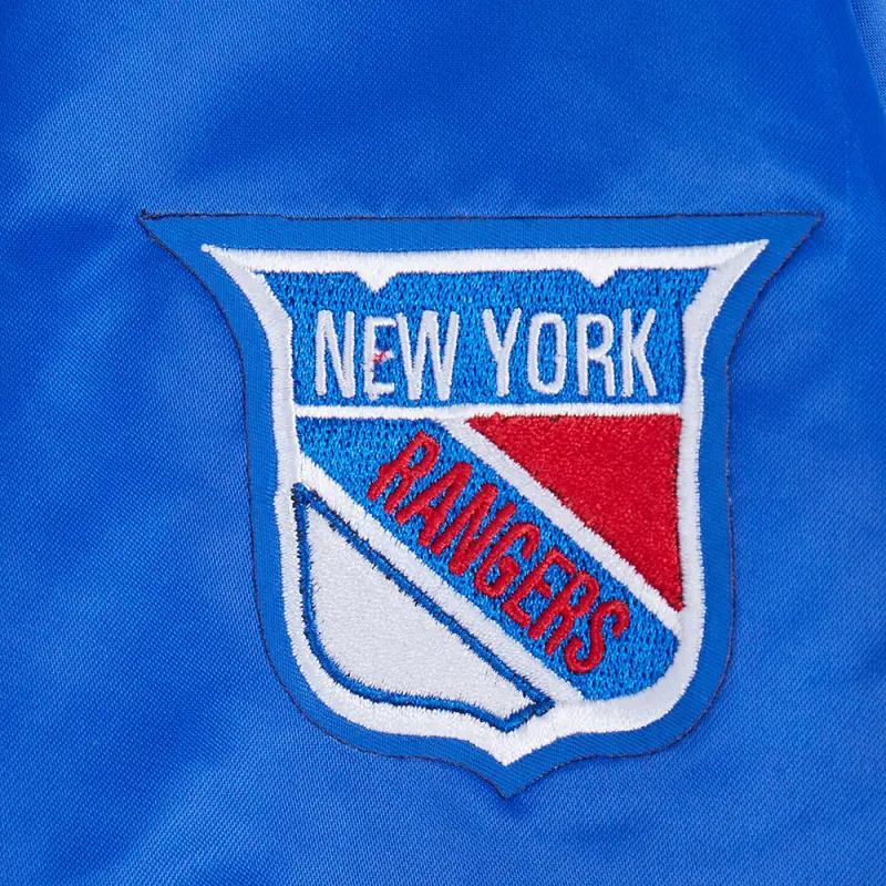 NHL NEW YORK RANGERS SCRIPT TAIL WOMEN’S SATIN JACKET (ROYAL BLUE)