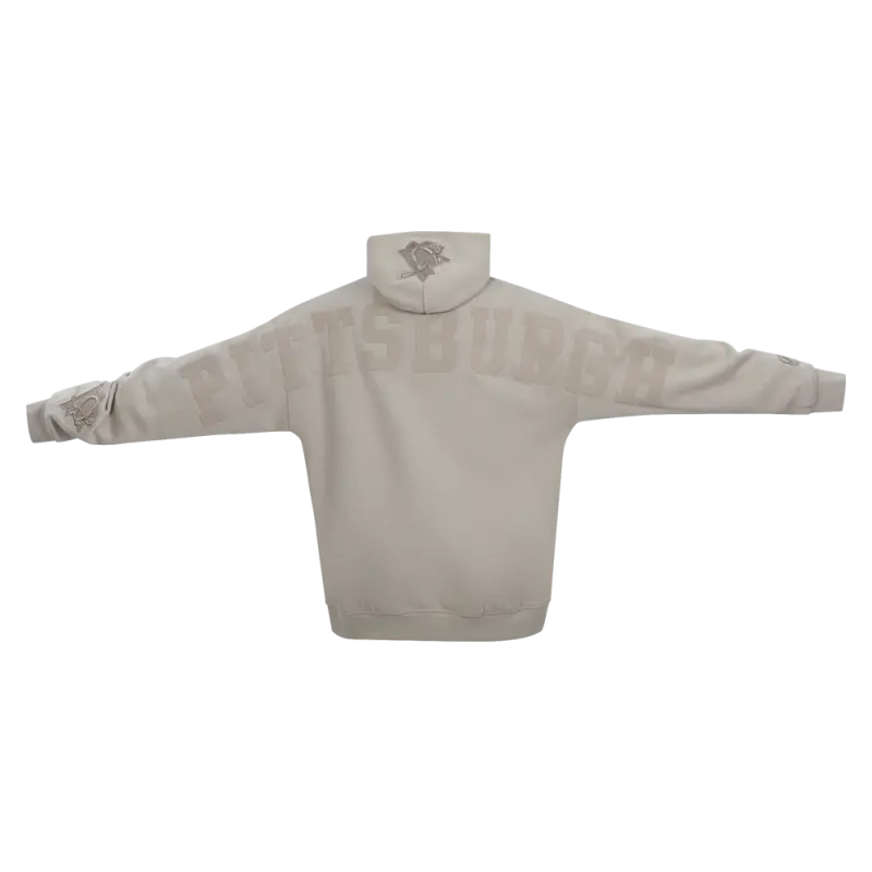 NHL PITTSBURGH PENGUINS WINGSPAN MEN’S DROP SHOULDER FLEECE PULLOVER HOODIE (TAUPE)
